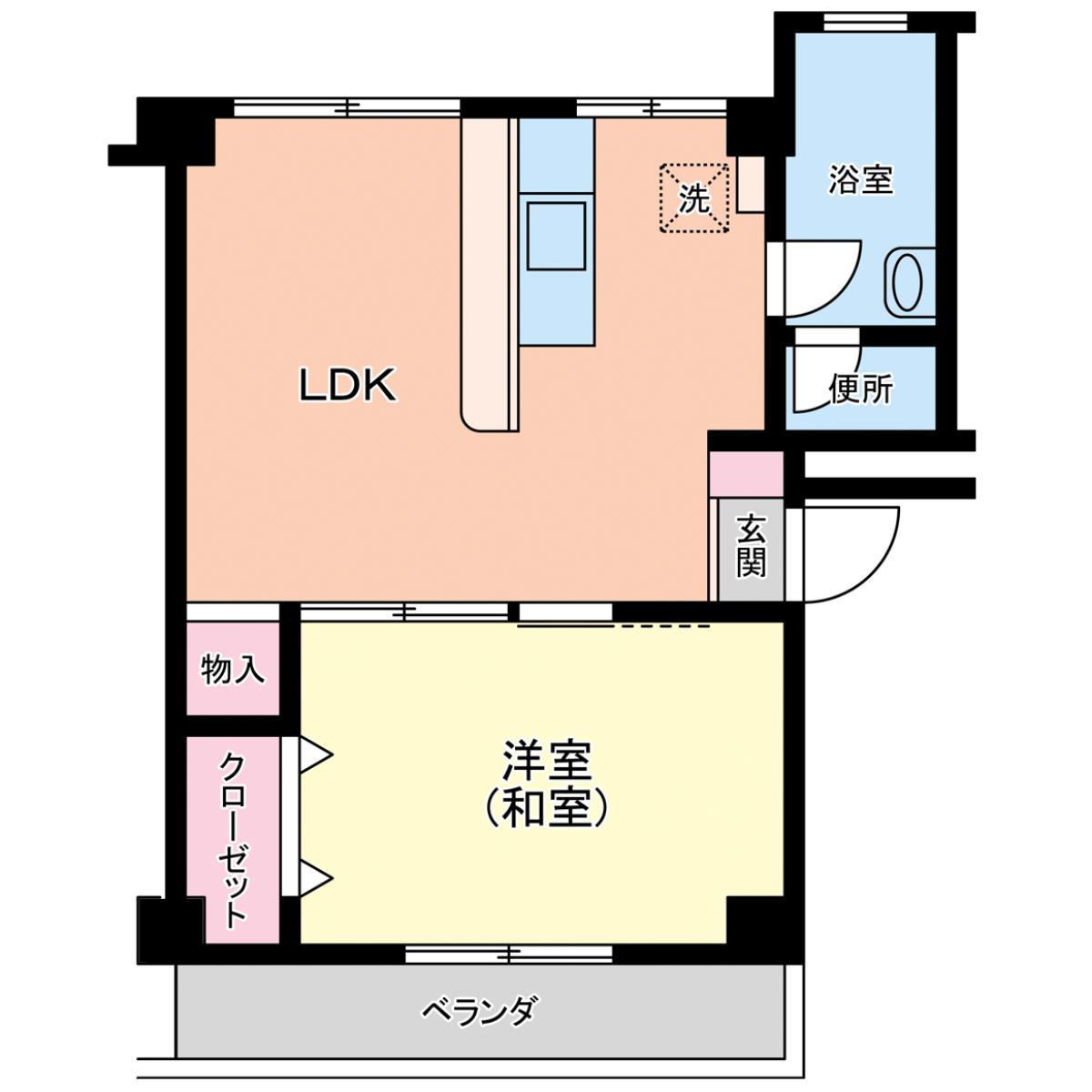 洋室のリフォーム部屋1LDになります!(6-202号はこちらの間取りの反転タイプです)